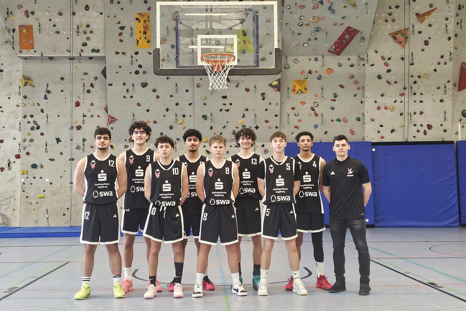 Auf dem Bild von links nach rechts: Furkan Sumeli, David Krstev, Marcel Mini Ocotero, David Khaleli, Tobias Chodura, Sebastian Lebmeier, Niklas Lenz, Gregori Nnamdi, Headcoach Martin Jankov